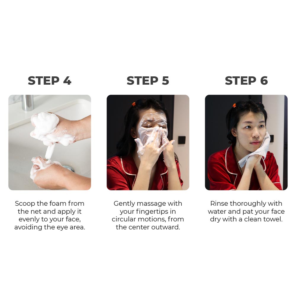 This is a soap-based formula with low soap content, so the foaming may be slower than typical cleansers. For dense and rich foam, we recommend using a foaming net.